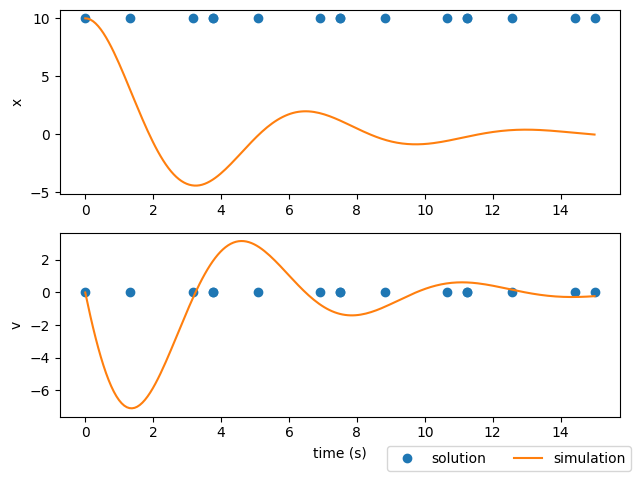 fig.legend((sol[0], sim[0]), ('solution', 'simulation'), loc='lower right', ncol=2)